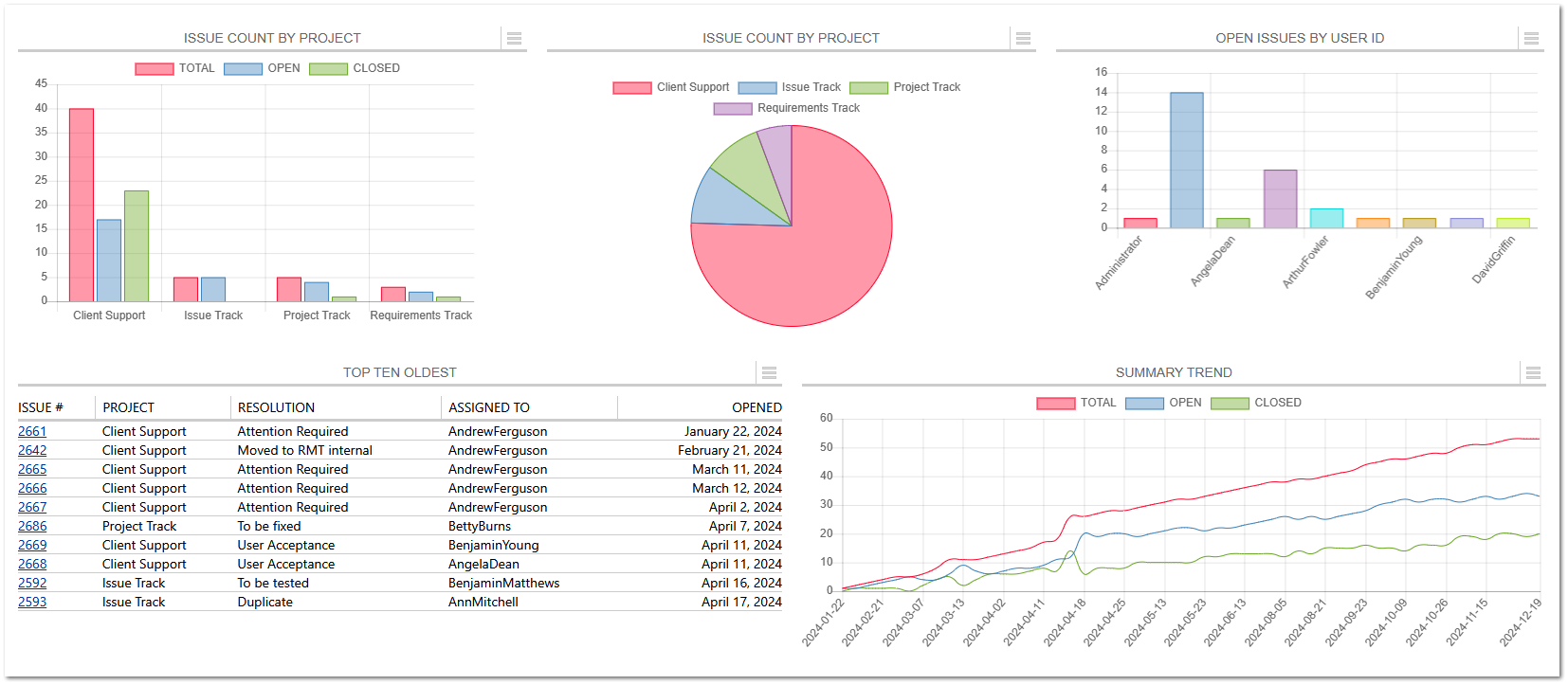 NOTE: The example report shown on this page, and its component reports, are part of the Example Reports package download. This report is called "Example - Dashboard".